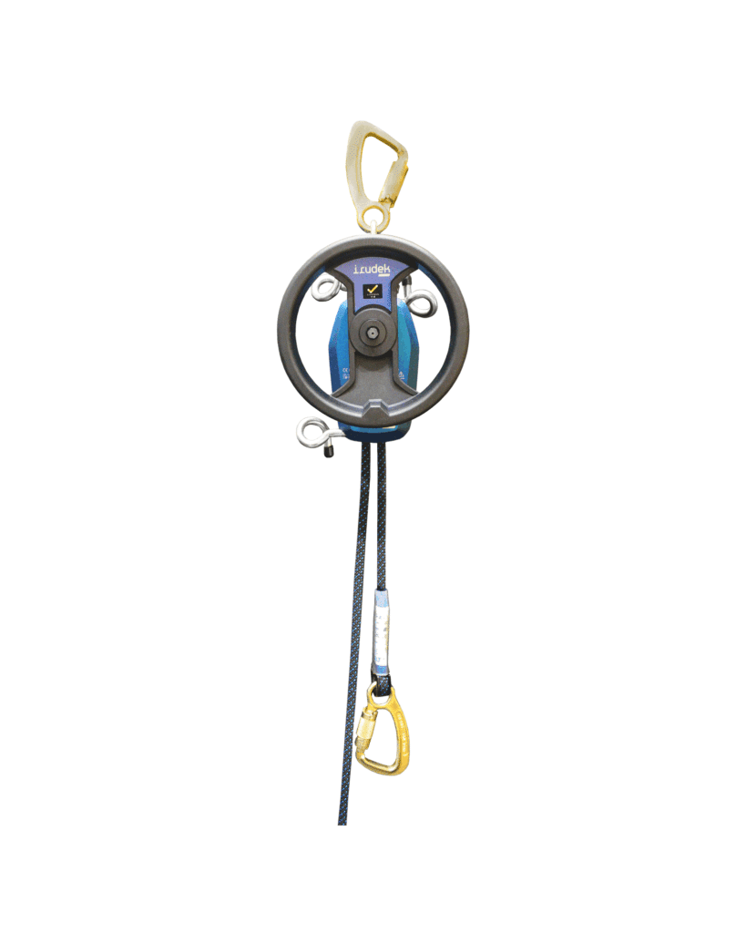 COMENTARIOS: Evacuador automático con volante con 30 mts de cuerda con conectores en extremos. Certificado para 2 usuarios de forma simultanea. Apto para rescate mediante descenso (EN 341) y ascenso (EN 1496).