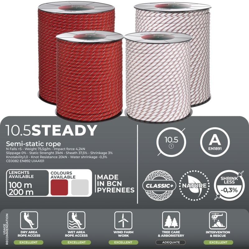 DATOS TÉCNICOS – CUERDA SEMIESTÁTICA PREENCOGIDA STEADY 10,5 MM