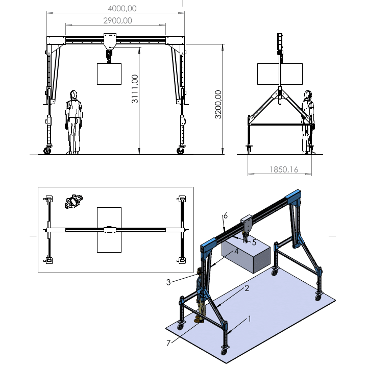 CARACTERÍSTICAS TÉCNICAS DE LA GRÚA PÓRTICO PORTÁTIL 1000K