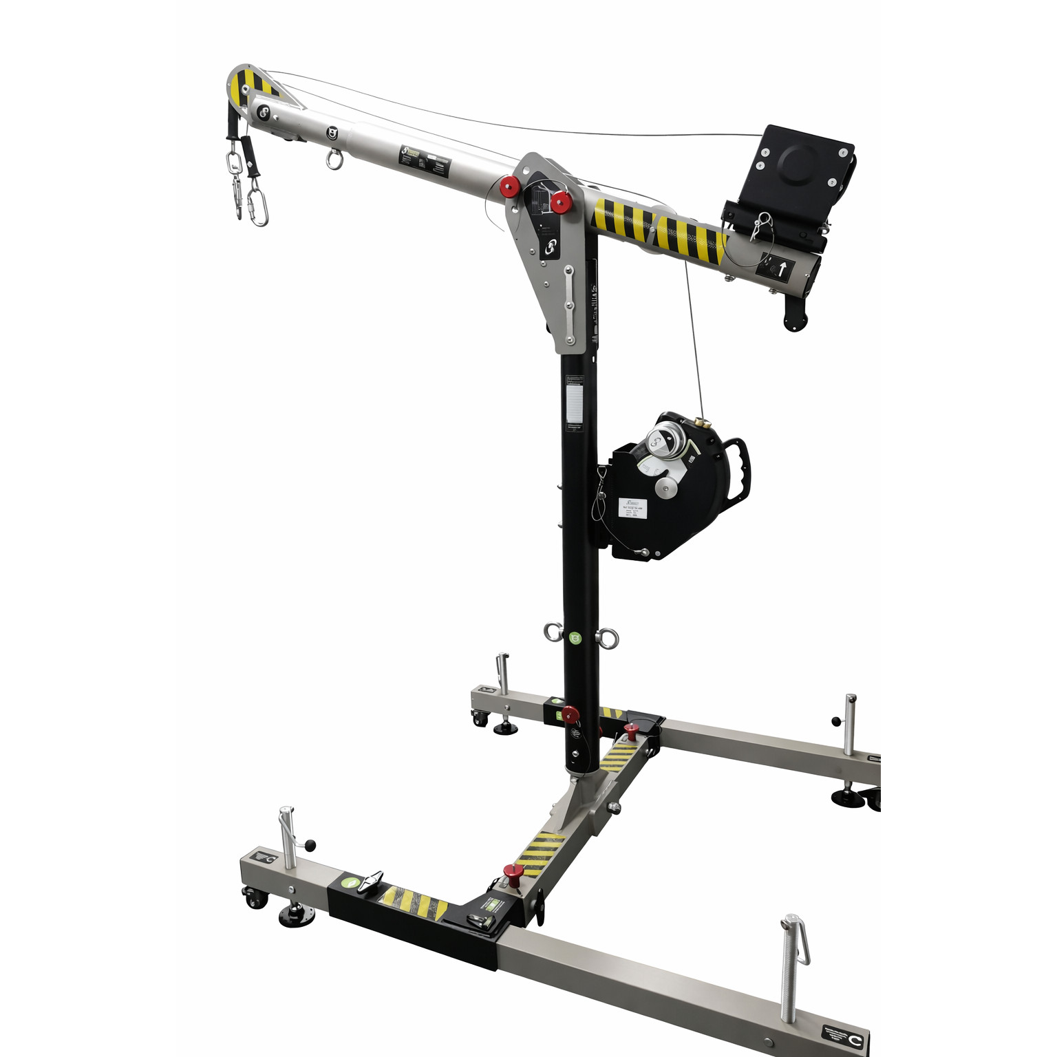 Se trata de un pescante de rescate autoportante que permite al usuario utilizarlo en cualquier zona sin necesidad de disponer de un pedestal o base previamente instalado. Además las 4 ruedas de la base en H facilitan el transporte y colocación del equipo.
