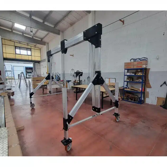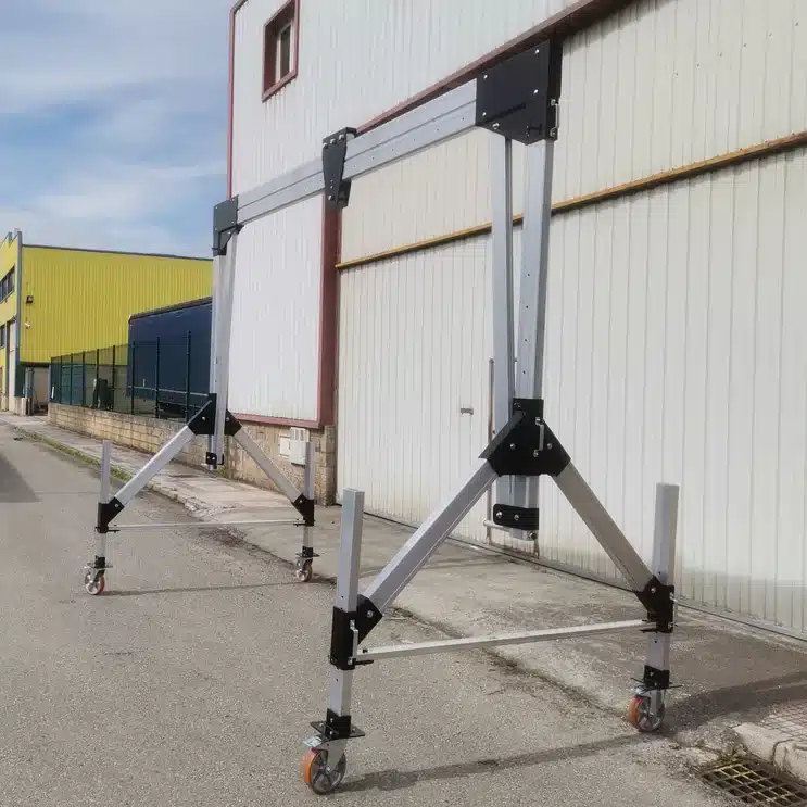 Eficiente en costes y logística frente a grúas fijas o alquiler de maquinaria pesada: fácil transporte, montaje rápido, versatilidad en obra o industria.