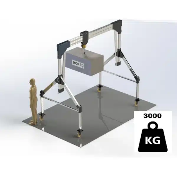 El PUENTE GRÚA PORTÁTIL 1T es un equipo para elevación de cargas construido con una estructura robusta y rígida.